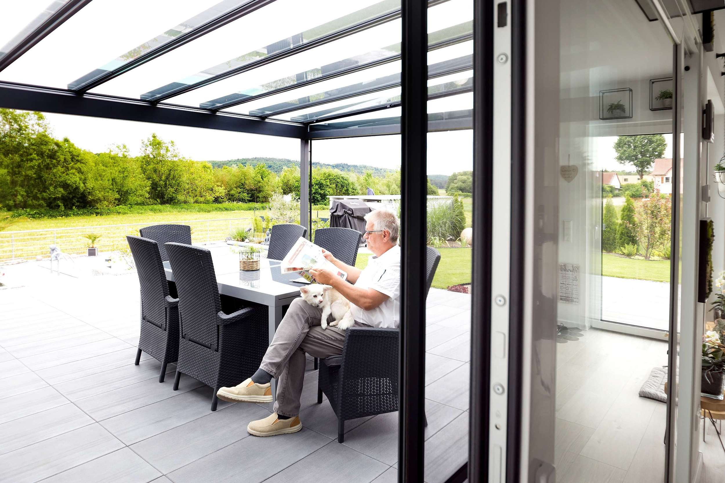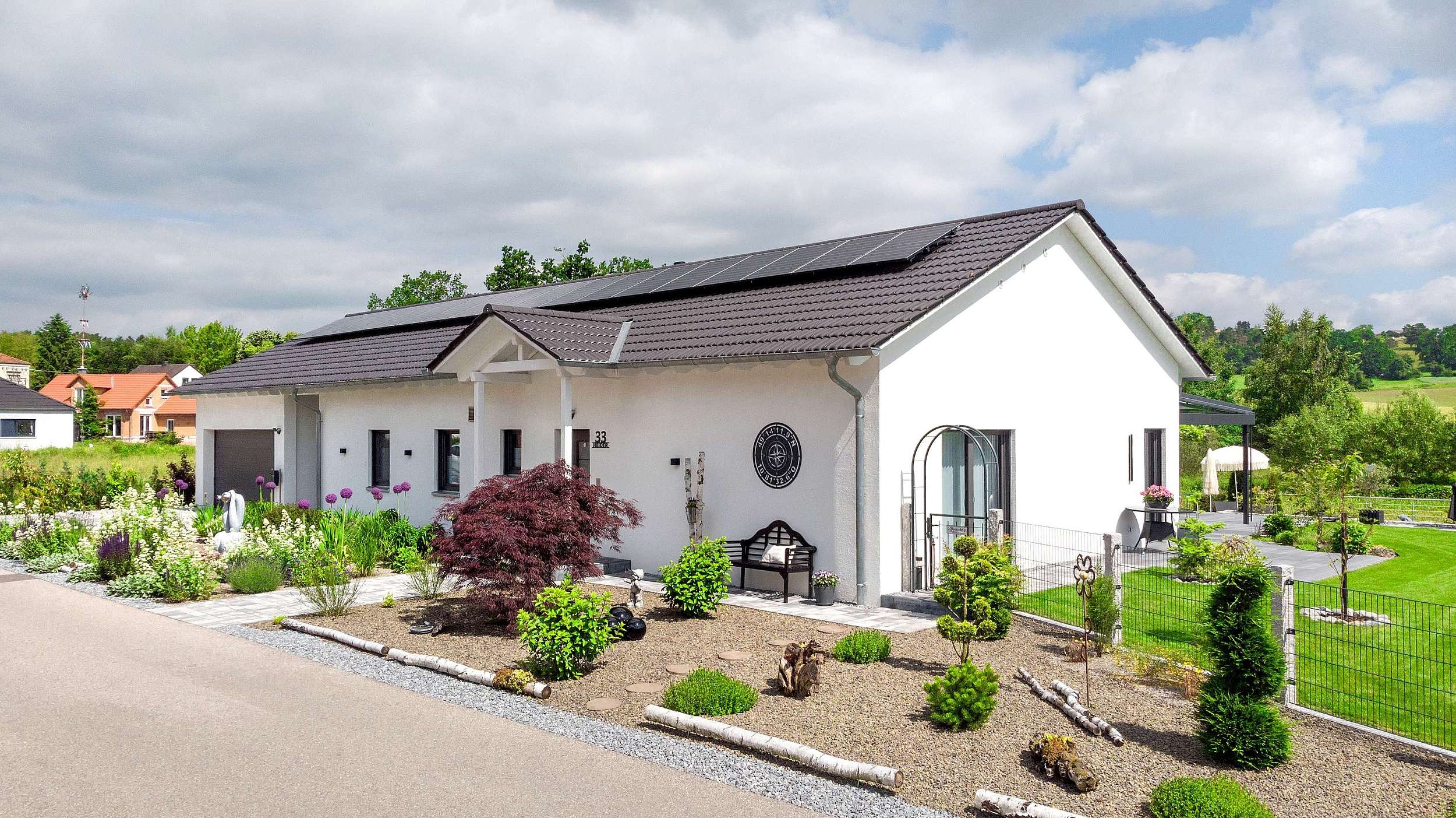 Der rund 150 m² große Bungalow überzeugt durch eine klare Raumstruktur und fließende Übergänge zwischen innen und außen. Mittelpunkt ist der offen gestaltete Wohn- und Essbereich, der direkt auf die überdachte Terrasse und in den Garten führt – ideal für lange Sommertage und entspannte Abende im Freien.