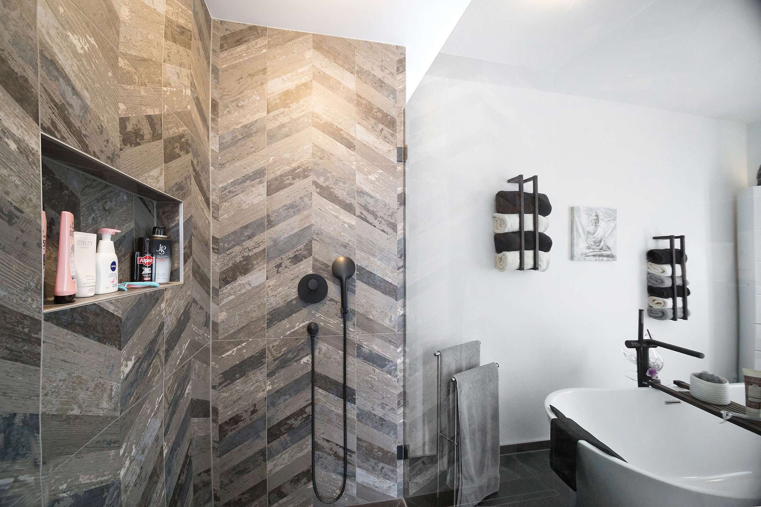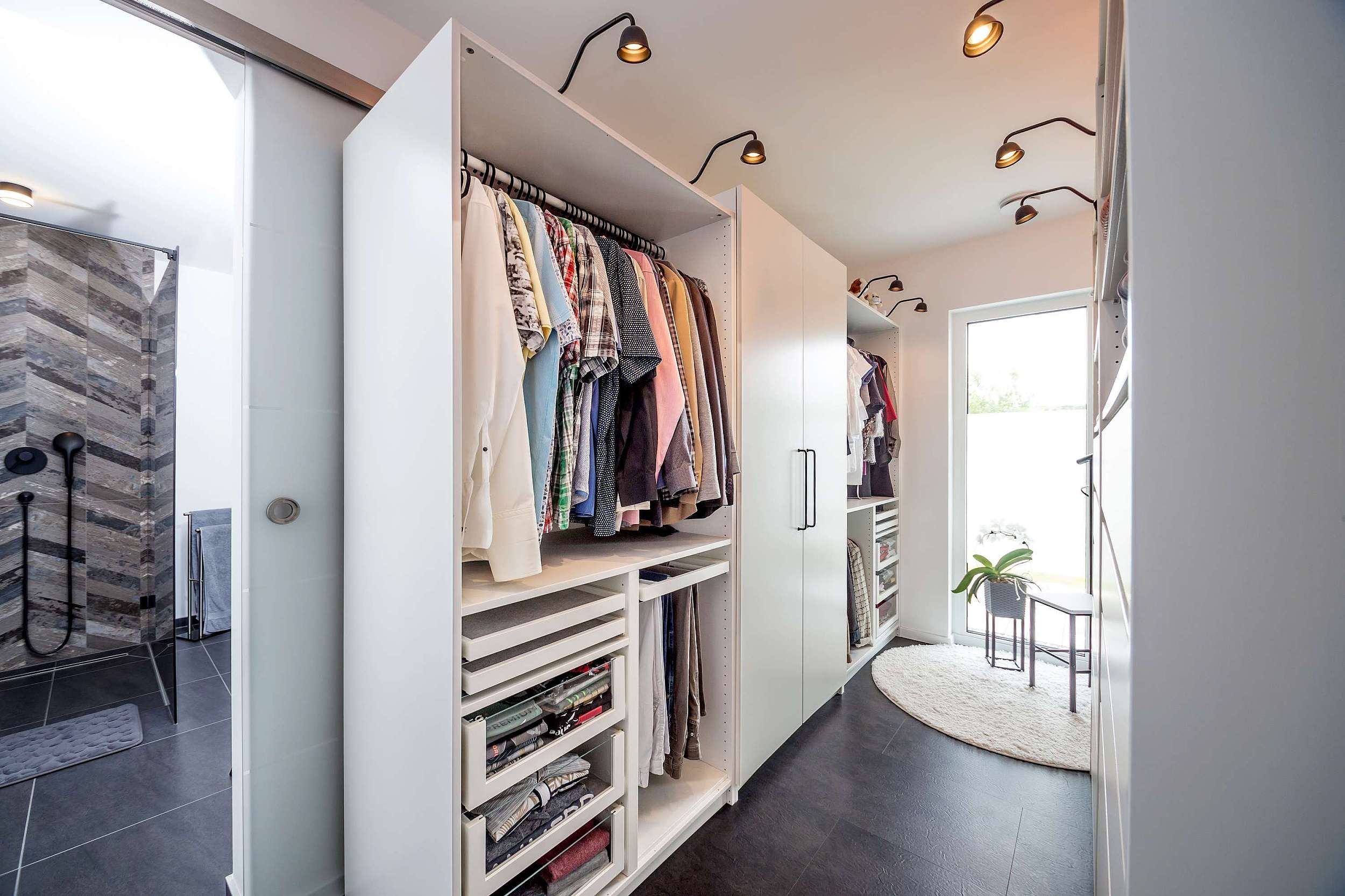 Besonders durchdacht ist der separat angelegte Schlafbereich im rechten Flügel des Hauses. Hier entstehen ruhige Rückzugsorte mit einem großzügigen Bad inklusive freistehender Badewanne, einer Ankleide sowie dem Schlafzimmer. Ergänzt wird das Konzept durch eine Einliegerwohnung, die zusätzliche Flexibilität für Gäste, Familie oder individuelle Nutzung bietet.