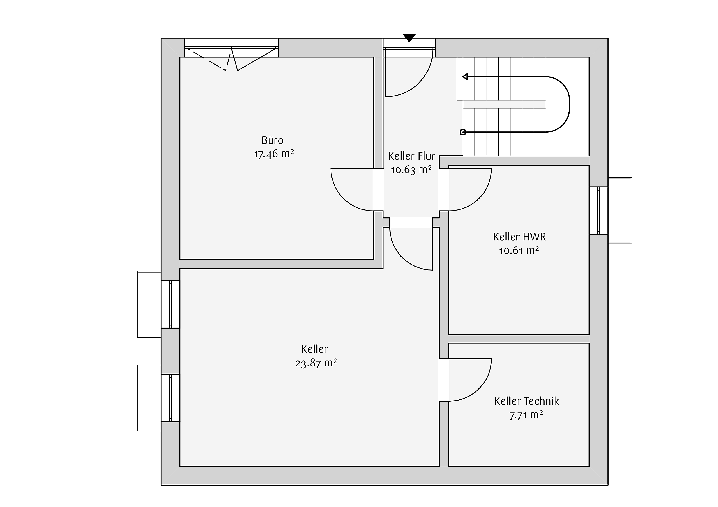 Neben den gemeinschaftlich genutzten Räumen bietet das Erdgeschoss zusätzliche Flächen, die flexibel als Gästezimmer, Homeoffice oder ruhiger Rückzugsort genutzt werden können. Technik- und Nebenräume sind so angeordnet, dass sie den Alltag unterstützen, ohne den Wohnbereich zu stören.