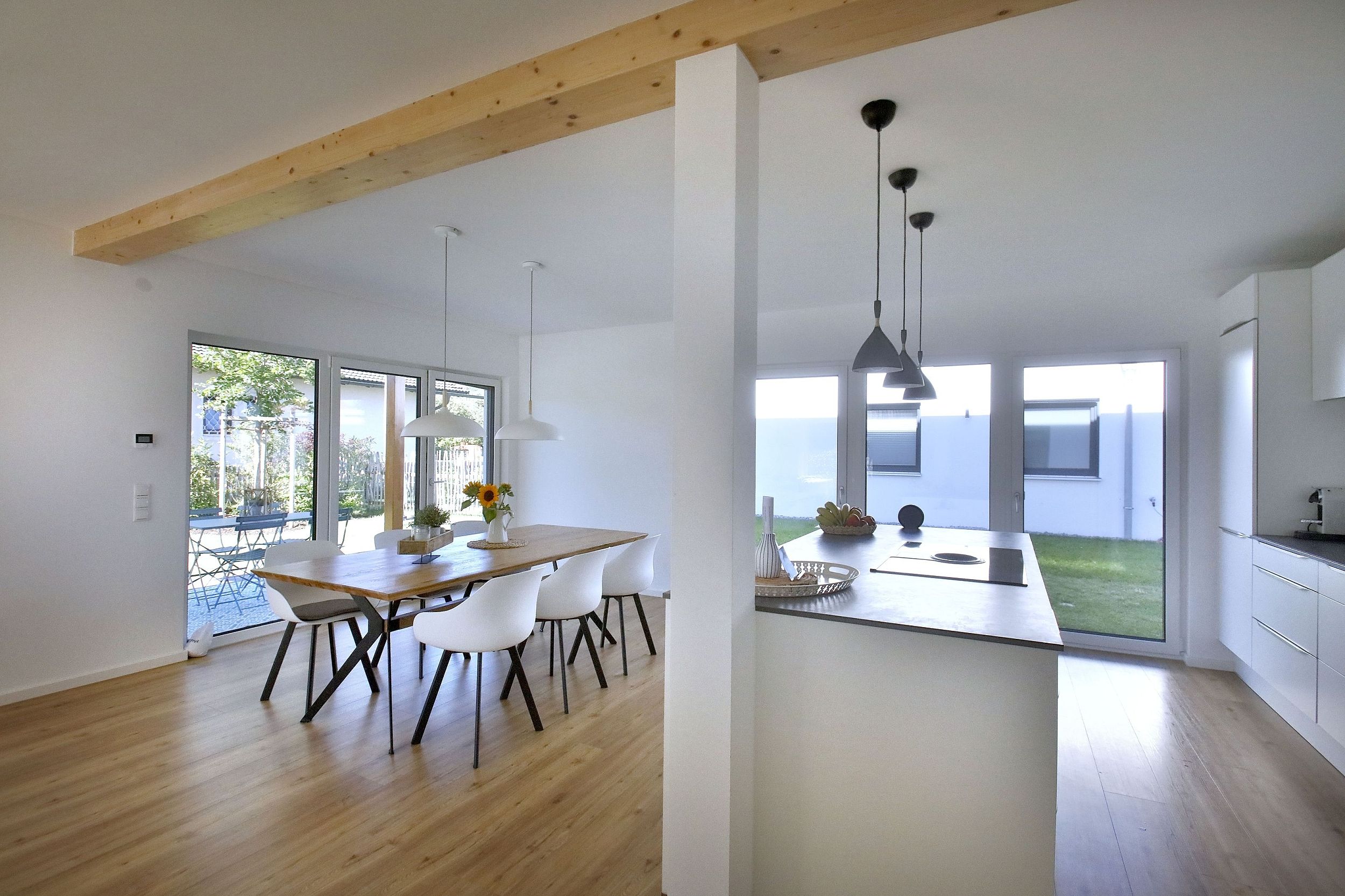 - Große Fenster für viel Tageslicht und Außenbezug